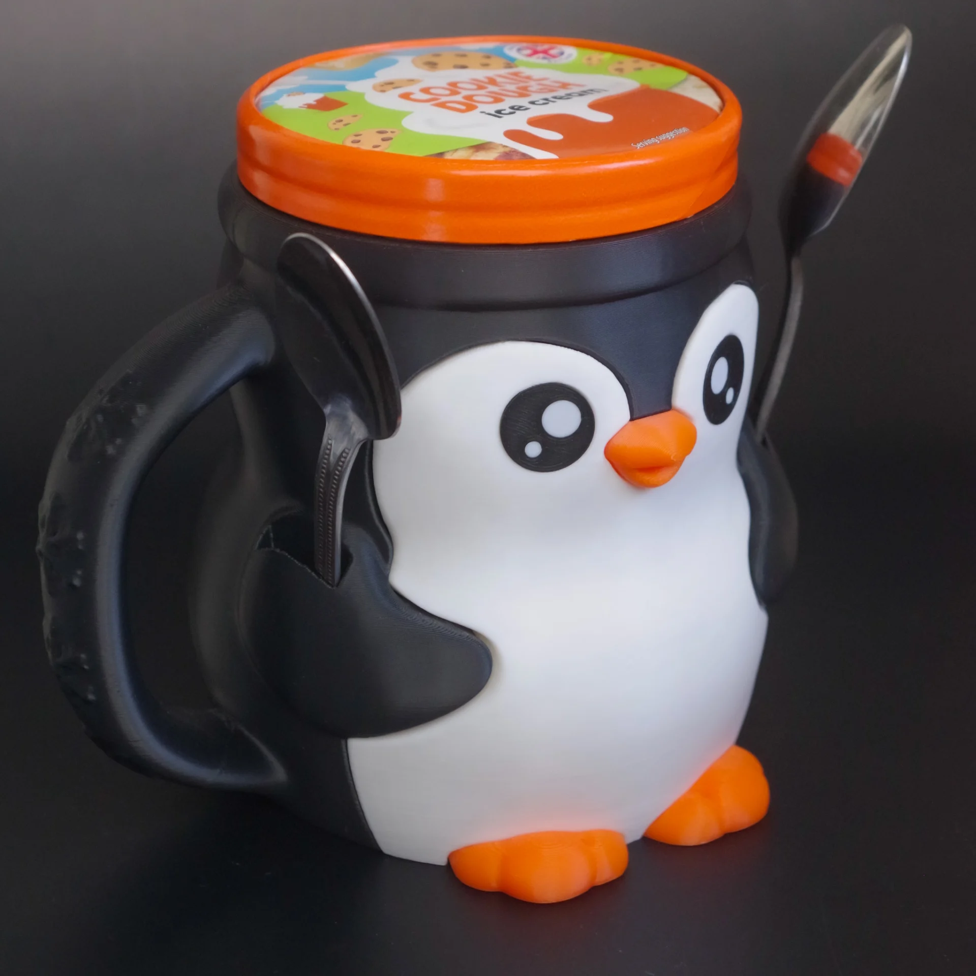 The Penguin Ice Cream & Snack Mug is designed to hold a standard 1-pint ice cream container, letting you enjoy every scoop without freezing your hands or leaving water rings on your table. Its chunky, insulated design and easy-grip handle make dessert time cleaner, warmer, and way more fun.